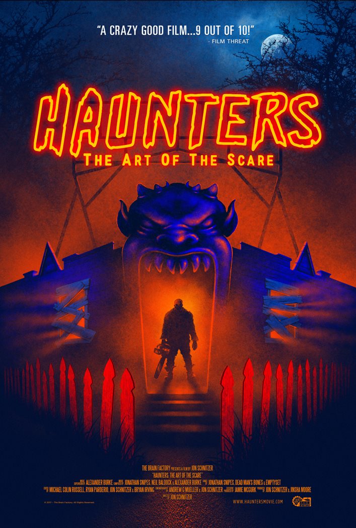 From the official press release: Haunters explores the rise of fear as entertainment and escapism, by going behind-the-screams and into the lives of Shar Mayer, legendary scare actor, Donald Julson, a traditional boo-scare maze designer, and the infamous Russ McKamey, as he creates the most controversial full-contact haunt of all time… in his own backyard. Also featuring John Murdy (Universal Hollywood Halloween Horror Nights), Jon Braver (Delusion), Josh Randall (Blackout), Eric Lowther (Haunted Overload), Bruce Stanton (Reign of Terror), Sylvia & Jen Soska (American Mary & GSN’s Hellevator), Jessica Cameron (Truth or Dare) and many more talented artists.