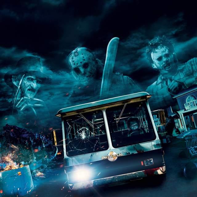 Freddy, Jason, Leatherface, and Chucky Take Over #UniversalHHN Terror Tram