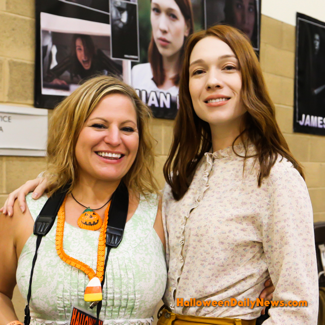 At last month’s historic H40: Forty Years of Terror Halloween anniversary event in Pasadena, CA., Rhian Rees, who plays “investigative journalist” Dana Haines in the new film, made her first ever convention appearance, meeting fans of all ages over two epic days alongside her co-star James Jude Courtney and the largest gathering of Michael Myers actors and franchise cast and crew ever assembled.